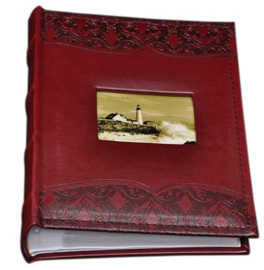 Album z pięknym wytłaczanym wzorem i okienkiem na zdjęcie, na okładce.