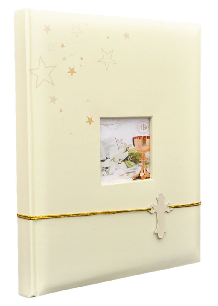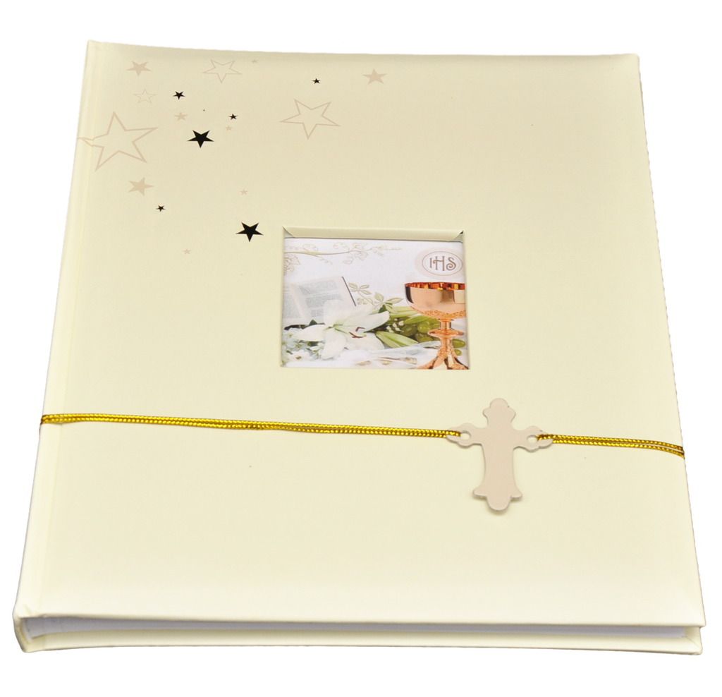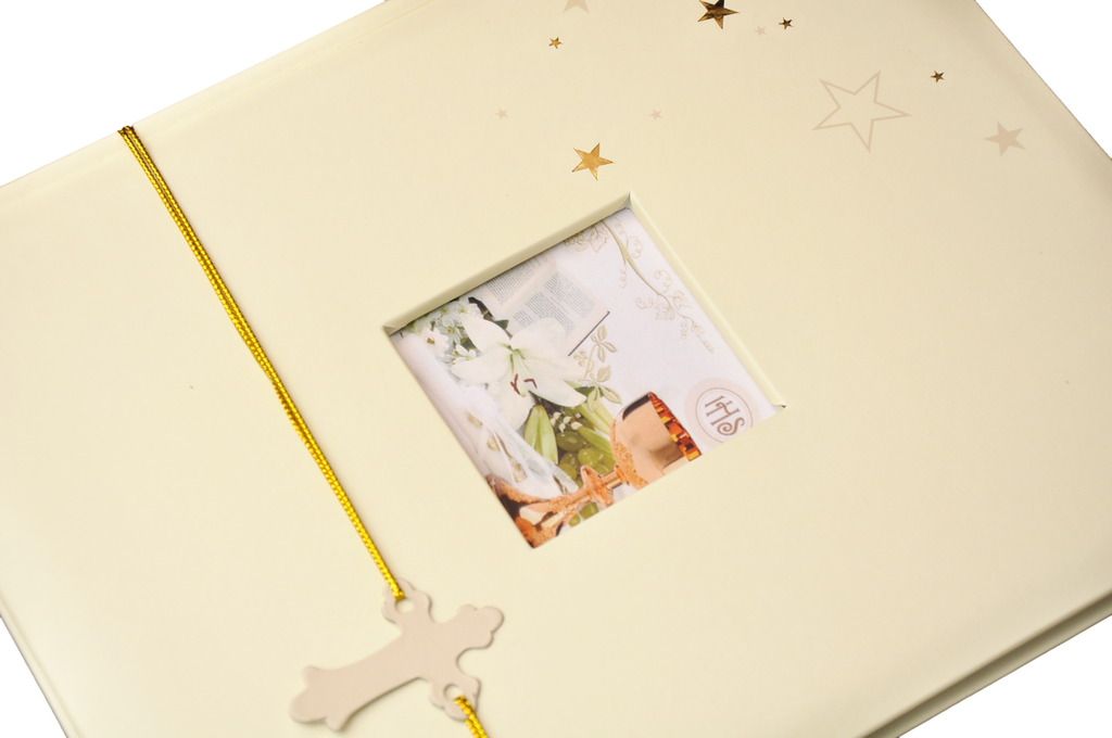 - Album tradycyjny do wklejania zdjęć, szyty, 20 kart (40 stron). Dobrej jakości album, w atrakcyjnej cenie. Album w kolorze złotym. Idealny prezent na Komunię Świętą.